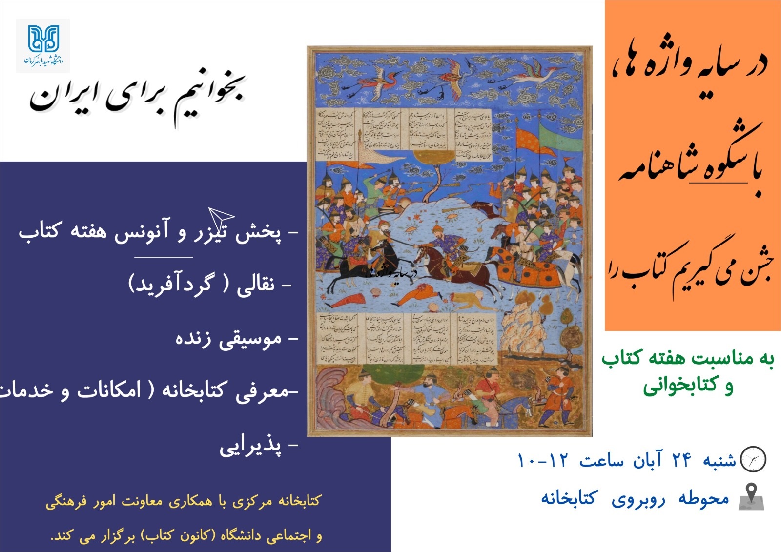 به مناسبت هفته کتاب، کتابخانه مرکزی برگزار می کند
